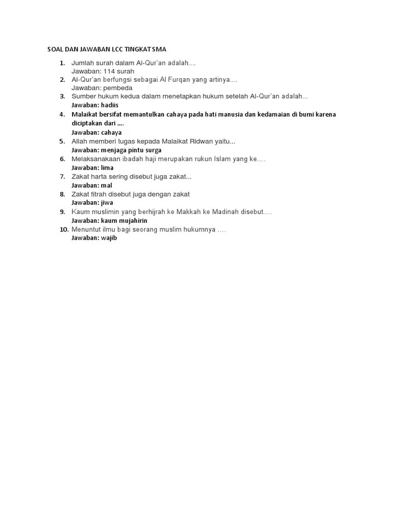 Soal Lcc Pai Sma : Soal Cerdas Cermat Agama Cca Islam Soalujian Net / Cerdas cermat sma adalah sebuah aplikasi pendidikan yang berisi kumpulan soal ujian sma (sekolah menengah atas).